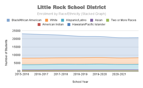 Before I dove into the testing data for the charter schools, I wanted to verify that students were actually transferring from LRSD to charter schools throughout the city. It was also possible that there were just fewer students overall in Little Rock due to population decline of school-aged individuals.